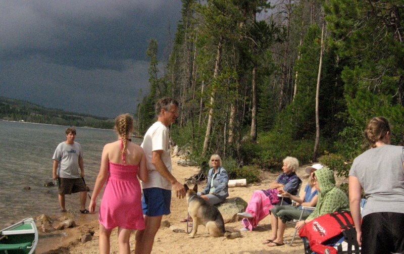And Grandma Beth and Terry had found the perfect spot for our group. They left home at 5 a.m. to arrive at Redfish by 9 a.m., and got the site as another group was leaving. The rest of us came in waves, and I'm glad we got there by 11 a.m., because that first afternoon was the only time it was warm enough to swim.